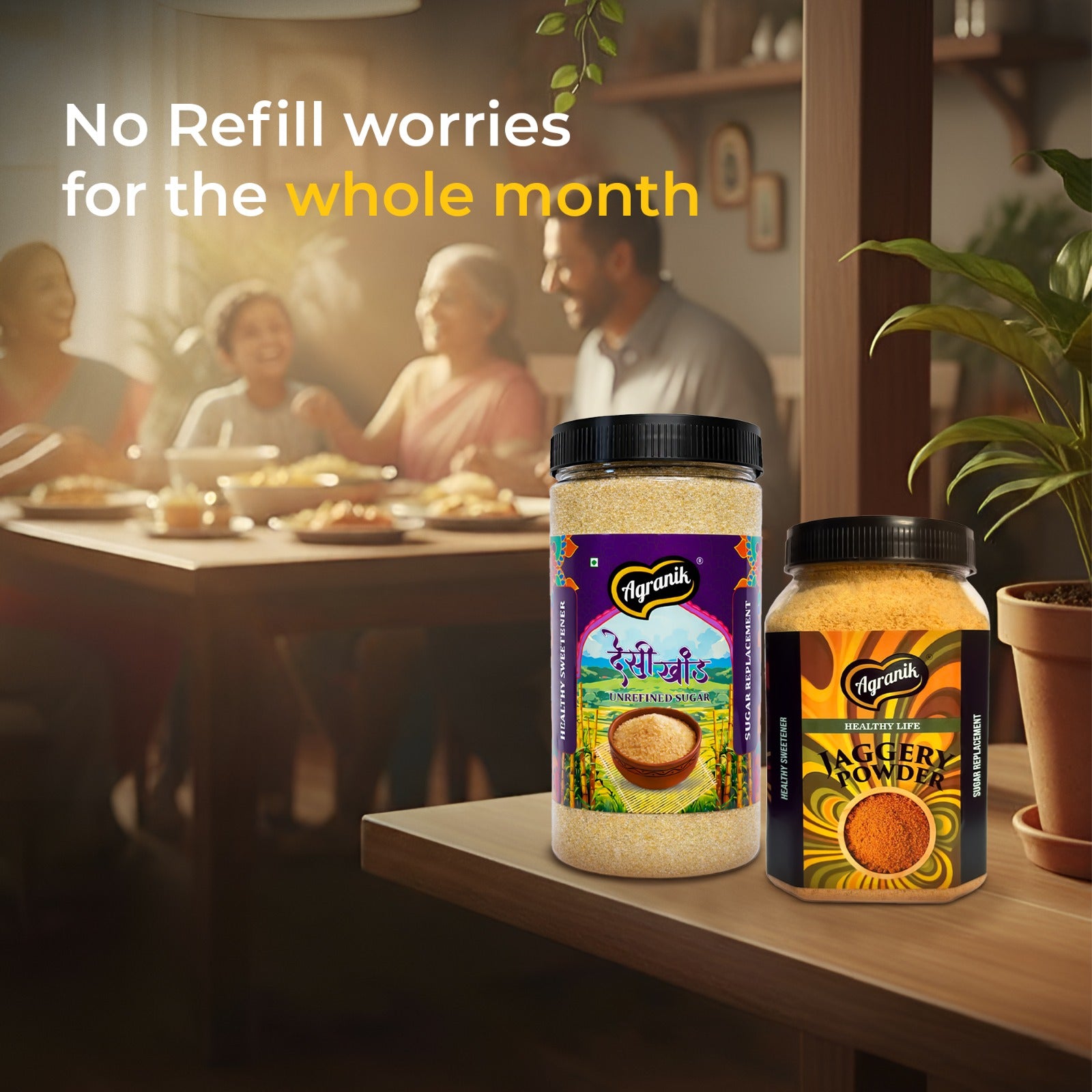 Agranik Healthy Sweeteners Combo Pure Jaggery Powder + Desi Khand Dual Combo Pack | 100% Chemical Free and Naturally Processed Healthy Sweeteners Best Alternative for Refined Sugar (700G + 700G)