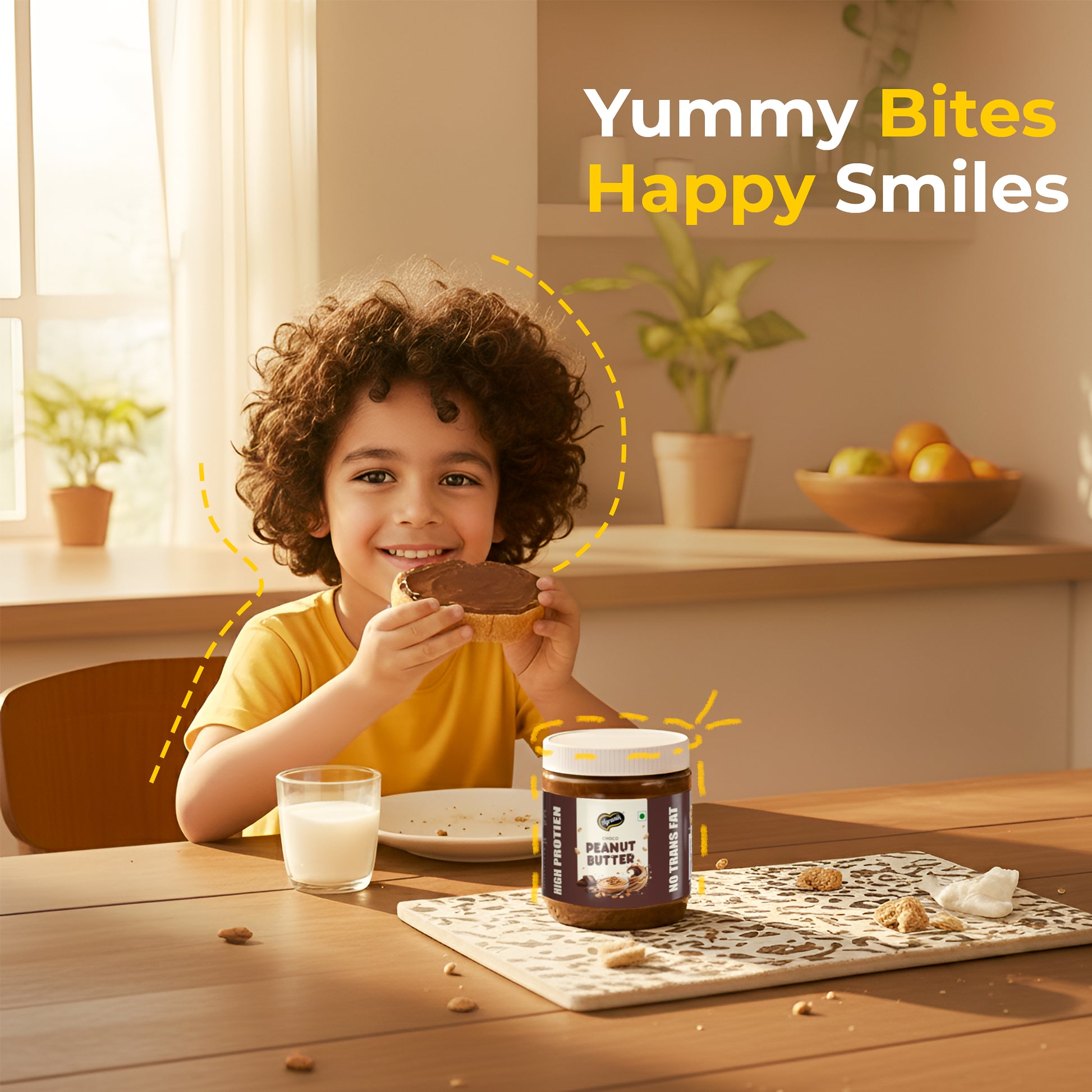 Agranik High Protein Dark Chocolate Peanut Butter is a rich, creamy and nutritious spread made from premium roasted peanuts and real dark chocolate. It is high in plant-based protein and free from palm oil, artificial flavors, and preservatives, making it a clean and healthy choice for daily consumption. This delicious peanut butter supports muscle recovery, boosts energy levels, and keeps you full for longer. With its smooth texture and intense chocolatey taste, it is perfect for toast, smoothies, desserts, or direct consumption. Hygienically packed to maintain freshness and quality, Agranik Dark Chocolate Peanut Butter is a guilt-free indulgence that blends great taste with wholesome nutrition.