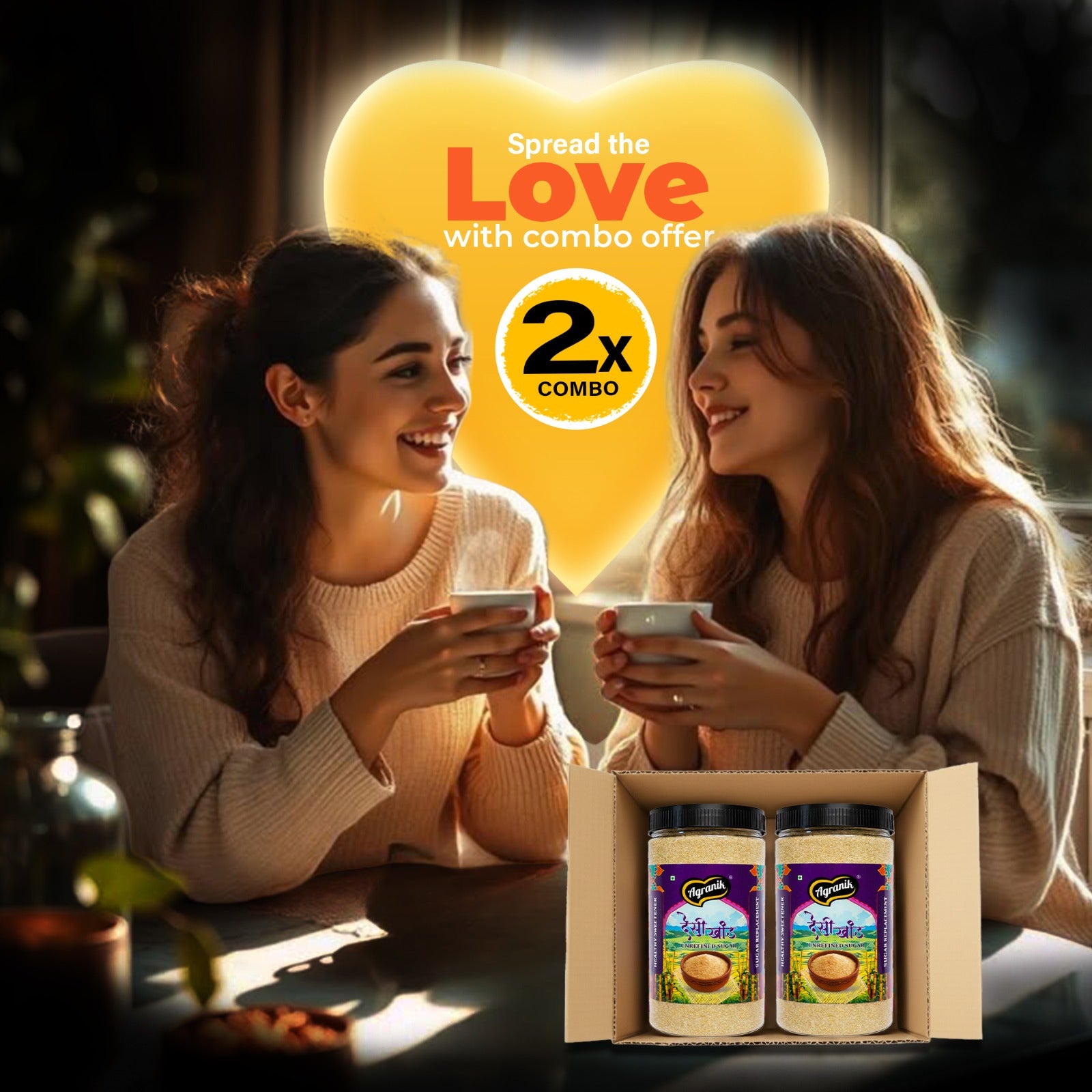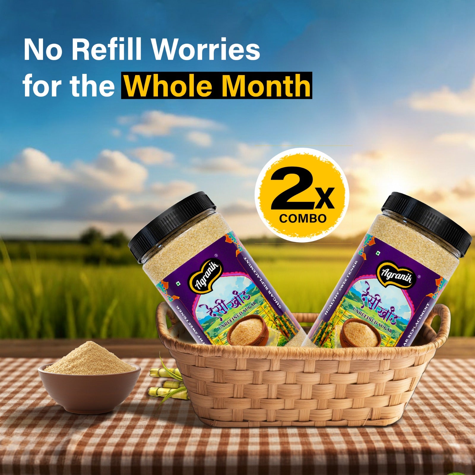 Agranik Pure Desi Khand Unrefined Sugar combo | 100% Chemical Free and Naturally Processed Healthy Sweetener Best Alternative for Refined Sugar (700Gx2)